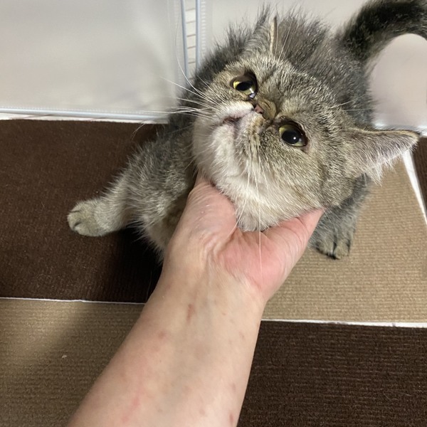 | 特徴(性格など) | 推定 3歳半〜4歳位の、 人懐っこく、優しい エキゾチックちゃん。 ※9月20日避妊済み |