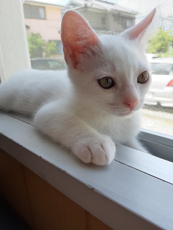 | 里親募集する理由 | 元々猫を飼っていて、白猫君も飼いたかったのですがその子と相性が悪いため、里親募集する事にしました。 | ||