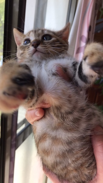 | 特徴(性格など) | 【見た目】 綺麗なムギワラ猫の女の子 茶トラとキジトラが混ざったような模様が素敵な子です。 お顔とおめめまんまるの美少女。 目の色はまだキトゥンブルー。 しっぽは長くてまっすぐ。 生まれたてで捨てられていたので、病気や怪我などもなく元気いっぱいです。 【性格】 活発でおてんば。 保護主さんがミルクで赤ちゃんから育てたので、人馴れ抜群です。 兄弟の茶トラと仲良し。 人も猫も好きなので先住猫さんがいても大丈夫! 遊ぶのが好きで、すばしっこい子です。 兄弟でもらってくれたら嬉しいにゃ〜(=^ェ^=) |