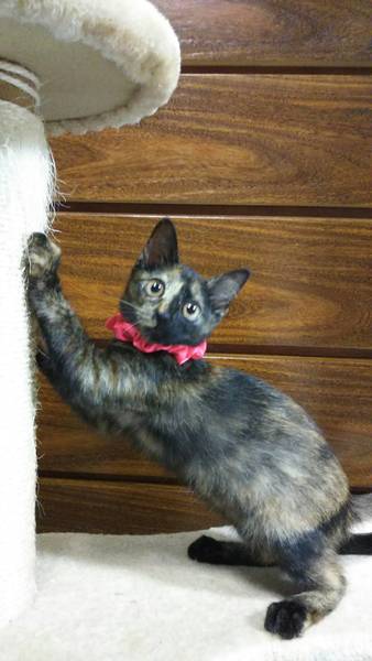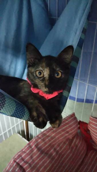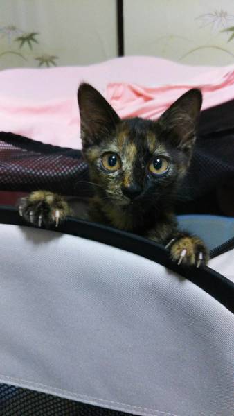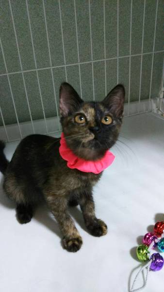 | 特徴(性格など) | チャミちゃん サビ猫 アピールポイント 小顔に鼻筋が通り 真ん丸なお目めが愛らしい。 遊び時はしっかりと遊び活発に。でも普段は大人しくダッコされるのも大好きな甘えん坊さん。 先住保護猫とも仲良しで、猫同士も大丈夫です。 初対面の方にも 喉をゴロゴロならし とても可愛い 女の子です。 食欲旺盛。とてもやり易い子猫です。 |