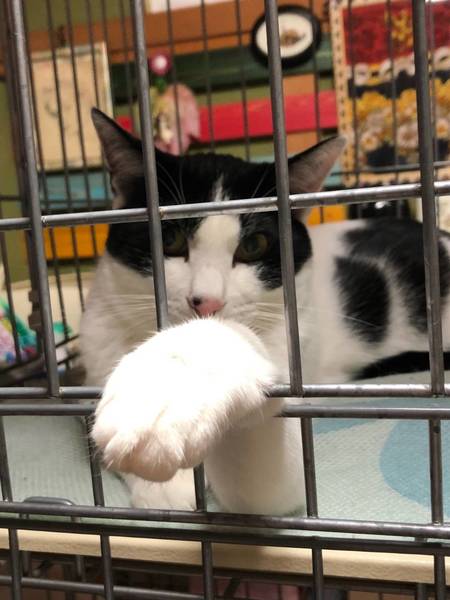 | 特徴(性格など) | チャームポイントはちょっと寄り目気味の瞳とまっすぐなシッポ。 イケメンなのにびびりな性格なため、譲渡会にも参加できず1才になってしまいました。 やさしい性格です。 フリーにすると捕まえるのが大変ですが、ケージの中だと触らせてくれます。 シャーとかウーとか威嚇しますが、引っ掻く噛みつくなど攻撃はしません。 |