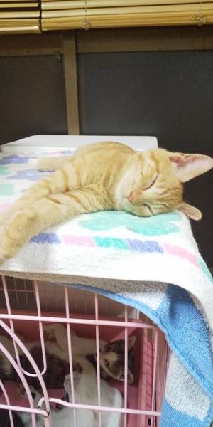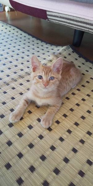 | 特徴(性格など) | 仔猫 名前は、金ちゃん ♂ ワクチン 2回済み(8/5 8/24) レボリューション 済み エイズ、白血病 陰性 抱っこ大好き、人馴れして、性格の良い子です。 保護時300グラム。 猫風邪で目が開きませんでした。 今は目は開きましたが、白濁がのこりました。 ですが、生活に不自由は無く、視力はあるので、良く遊び良く食べます。 将来は大きくなりそう!? |
