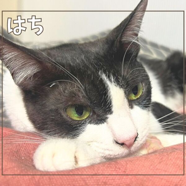 | 特徴(性格など) | ▼△▼譲渡会情報▼△▼ ①ねこけん譲渡会in島忠ホームズ仙川店 毎月[第4]日曜日開催 12:00~16:00 ↓詳しくはイベントをご確認ください↓ https://satoya-boshu.net/event/?@button_name@=search&Event_MemberID=1288 ②こまばサロン暖炉 ~本気の譲渡会~ 毎月[第1][第3]日曜日開催 13:00~17:00 [主催] 保護猫譲渡会カフェ こまばサロン暖炉 予約優先制【予約方法:主催者様宛メール予約】 [ホームページ] https://komaba-honki.amebaownd.com/ [Instagram] https://www.instagram.com/komaba.neko/ [Facebook] https://www.facebook.com/nyankomaba/ ※主催者様の告知を必ずご確認くださいますようお願いいたします。 ※事前予約の際にお声のかからなかった猫さんは当日参加しない可能性があります。 ----- 撫でなで好きに進化中!はち♪ 推定生年:2013年4月 毛色:白黒ハチワレ 尻尾:長くてまっすぐ 最初はちょっぴり怖がりさんで、タワーの上からこちらの様子をうかがう事が多かったのですが、最近ではドンドン人馴れが進み、そ~っとナデナデできるまでに成長!! 近くにいてくれる事も多く、声をかけながらそっと撫でると目を閉じてウットリした表情を見せてくれます♥ 人の手の温もりや撫でられる心地良さを知って、今まさに人との距離が縮まっているところです。 パッチリお目めのキュートな顔立ちに、意外とぷるん♪としたお腹がチャームポイント^^ おとなしくて穏やかな性格で、嫌なことには、手が出るよりも逃げちゃうタイプです。 食べることも大好きで、出されたウェットご飯はいつも綺麗に完食してくれます。 同室のお友達ともいつも仲良くくっついていて猫付き合いが上手なので、先住猫さんのいるご家庭でも仲良く暮らしていけると思います。 オンライン譲渡会のアーカイブ動画も是非ご覧ください♪ ▶YouTubeLive譲渡会 参加回 #1 #4 #7 #11 https://youtube.com/playlist?list=PLGxWcXWzmM4So7TE8_FdaeNUOPzQA1wju ☆不妊去勢手術済 ☆ワクチン済 ☆ノミダニ取り済 ☆駆虫済 ☆マイクロチップ挿入済 ☆トイレしつけ済 ☆ウイルス検査 エイズ(-)、白血病(-) |
