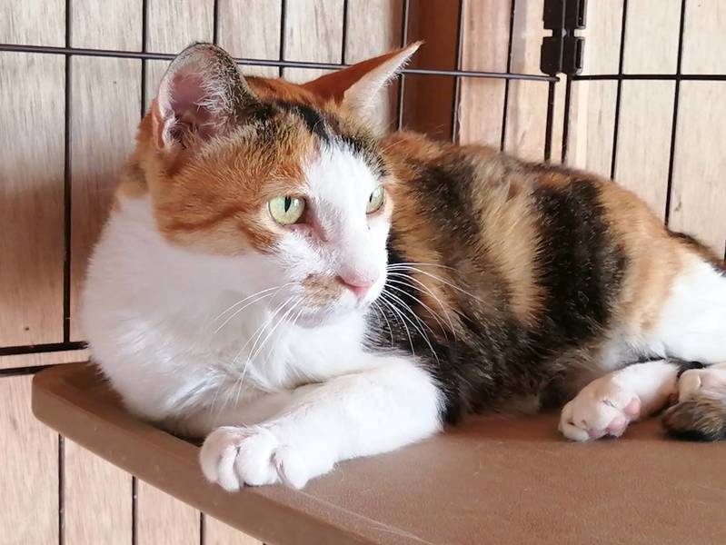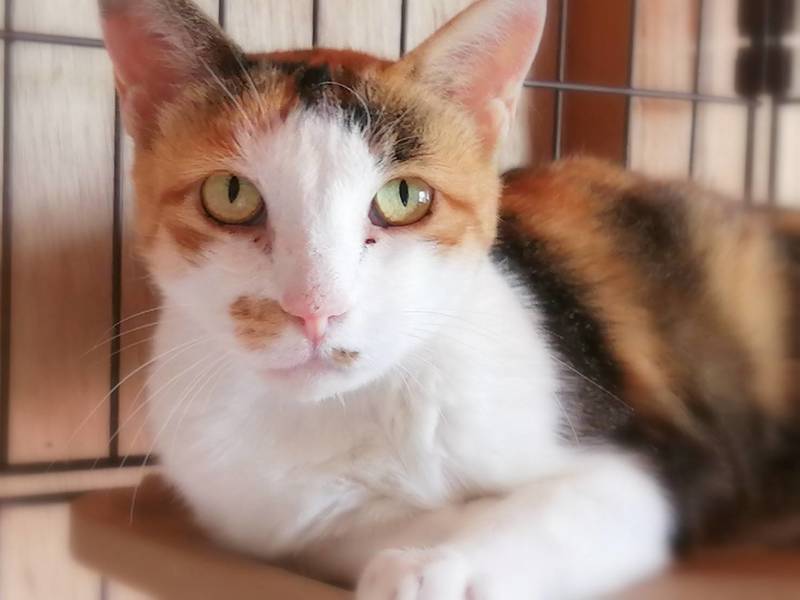 | 特徴(性格など) | 三毛猫 おとなしい子です おんざまゆげに見える模様がとても可愛いです。 穏やかな性格で他の子とも仲良くしています。 とても飼いやすい子です。 元気に過ごしています。 |