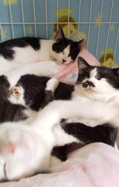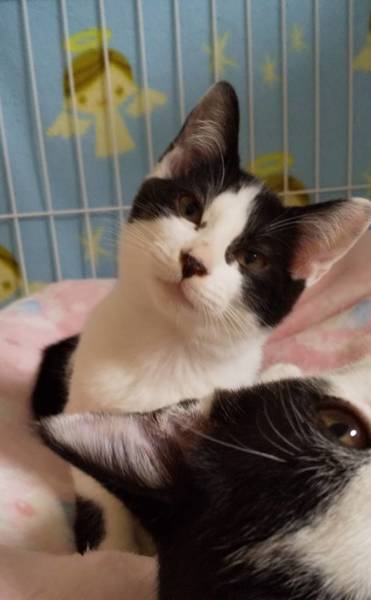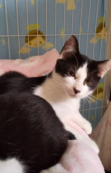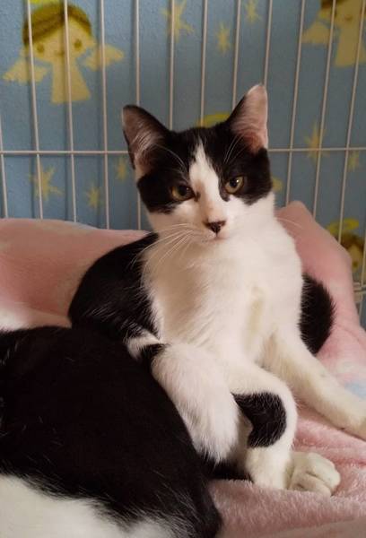 | 特徴(性格など) | 白黒柄の子猫 人慣れしています おもちゃで遊ぶの大好きです 尻尾は長くまっすぐです 姉妹たちと一緒にいます 男の子はこの子だけです |