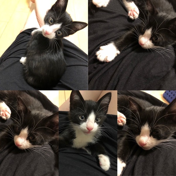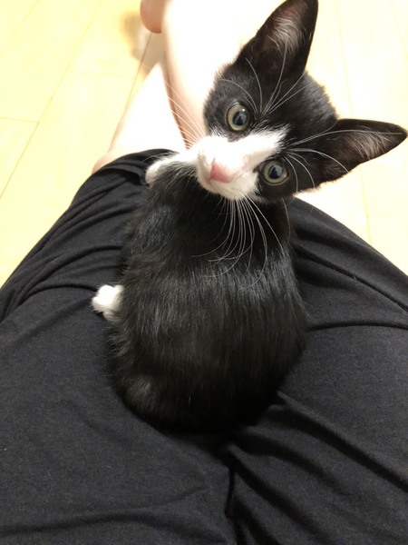 | 特徴(性格など) | 綺麗なトムキャット(ハチワレ)模様の男の子です。 性格はとにかく人が大好き! ゴロゴロふみふみがとまりません。 カリカリごはんもトイレも問題なくクリアしました。 |