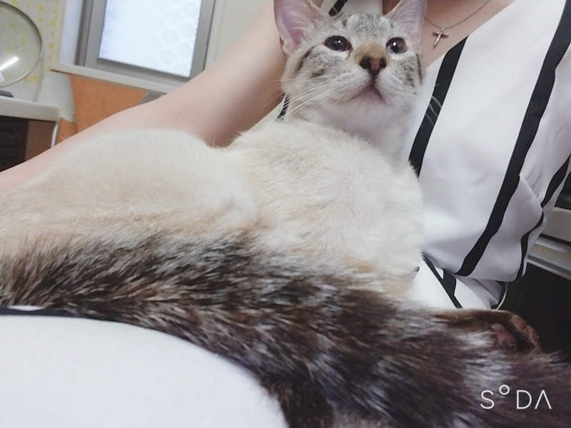 | 特徴(性格など) | シャム猫風です。 顔としっぽがシマシマで、瞳はブルーでとてもかわいいです。 性格は甘えん坊で、膝の上が大好きで座っているとゴロゴロいいながら近づいてきます! |