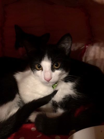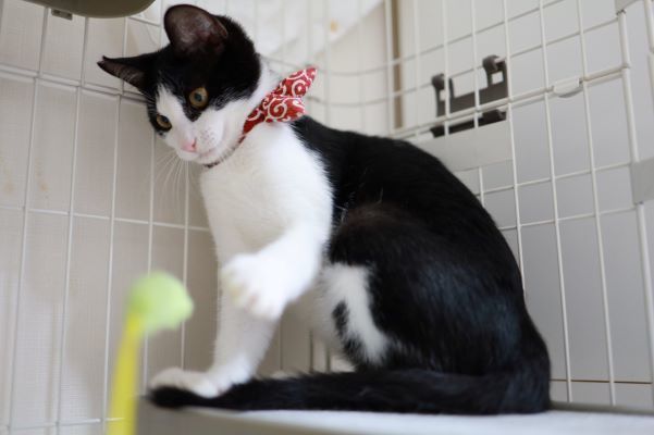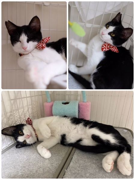 | 特徴(性格など) | 名前:つばめシロー 保護日:8月30日 年齢:4ヵ月(5月10日生まれ) 色柄:白黒ハチワレ 尻尾:黒くて真っ直ぐな長い尻尾 性格:少し臆病な部分がまだありますが、手が出たり噛んだりすることは決してありません。膝に乗せて撫でれば甘えてゴロゴロ喉を鳴らし、抱っこも確保も簡単で、爪切りも出来ます。きょうだいのなつめとはよく一緒に遊んでいます。1匹だと活発に遊ぶというより引きこもる可能性がありますので、なつめと2匹一緒にお迎えいただくか、先住猫さんがいる環境が望ましいと思います。 健康状態体重:2.4㎏ ワクチン:初回接種済 去勢手術:済 血液ウィルス検査:猫エイズ・猫白血病共に陰性 |
