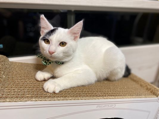 | 特徴(性格など) | 名前:なつめイチロー 保護日:8月25日 年齢:4ヵ月(5月10日生まれ) 色柄:頭のベレー棒と尻尾が黒で、あとは真っ白 尻尾:短めのカギ尻尾 性格:人懐っこい甘えん坊。撫でられるのが大好きで抱っこも平気。好奇心旺盛で物怖じしませんが、猫より人が好きなようで。大人の猫に自分から近づくことはあまりありません。きょうだいのつばめとはよく一緒に遊んでいます。繊細な先住猫さんとは合わないかもしれません。 健康状態 体重:2.1㎏ ワクチン:初回接種済 去勢手術:済 血液ウィルス検査:猫エイズ・猫白血病共に陰性 |