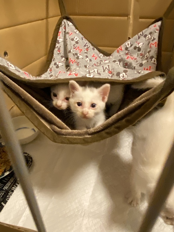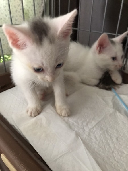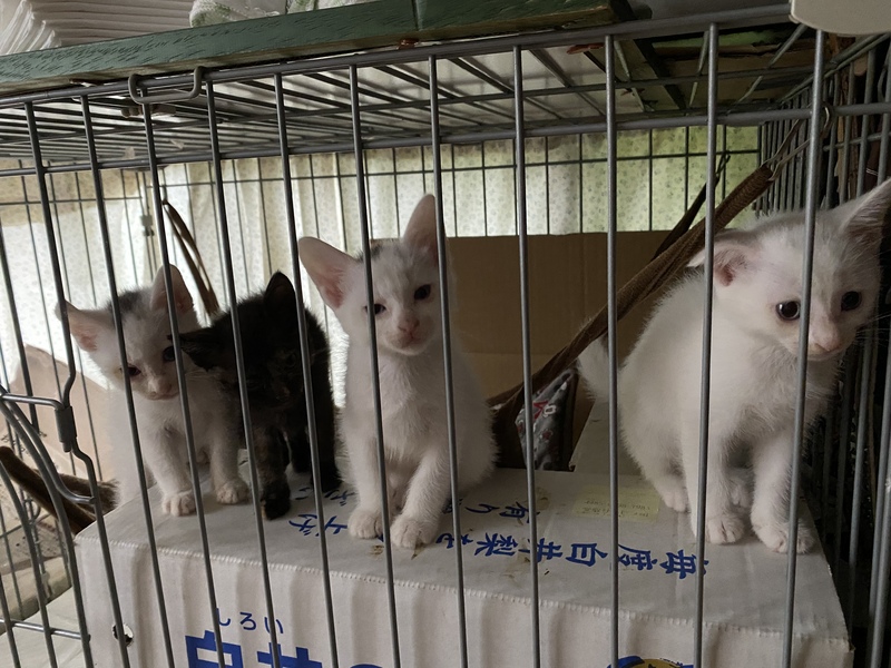 | 特徴(性格など) | 1.白 メス 頭 黒の毛で"の印有 とっても元気 2.白 メス 頭 黒と茶の毛で、メッシュに入っている。超元気 かぎしっぽ 3.白 オス 頭 黒の毛でウサギマークの模様 甘えん坊 4.黒 所々茶 生殖器奇形 身体は、小さいが食欲旺盛、元気いっぱい |