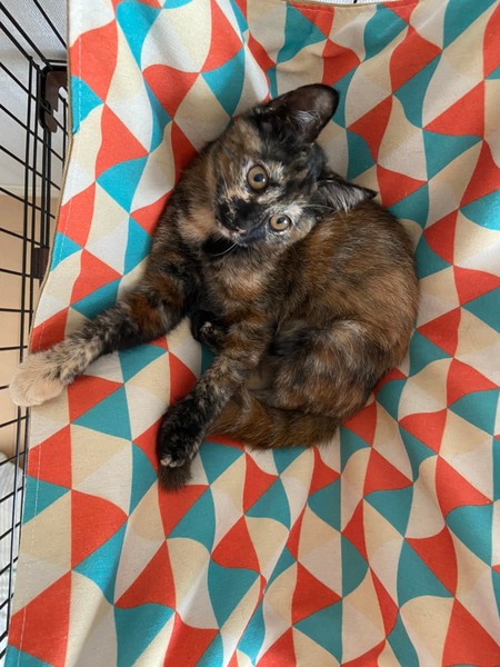 | 特徴(性格など) | 2020.6.1生まれ(推定) 毛色:サビ 海外では人気のある毛色のサビ。 鼈甲の様に美しいと。 ちょっと垂れ目がチャームポイント。 性格は控えめな甘えん坊。 抱っこも大好きで喉を鳴らしながらひっそりと甘えてきます♡ |