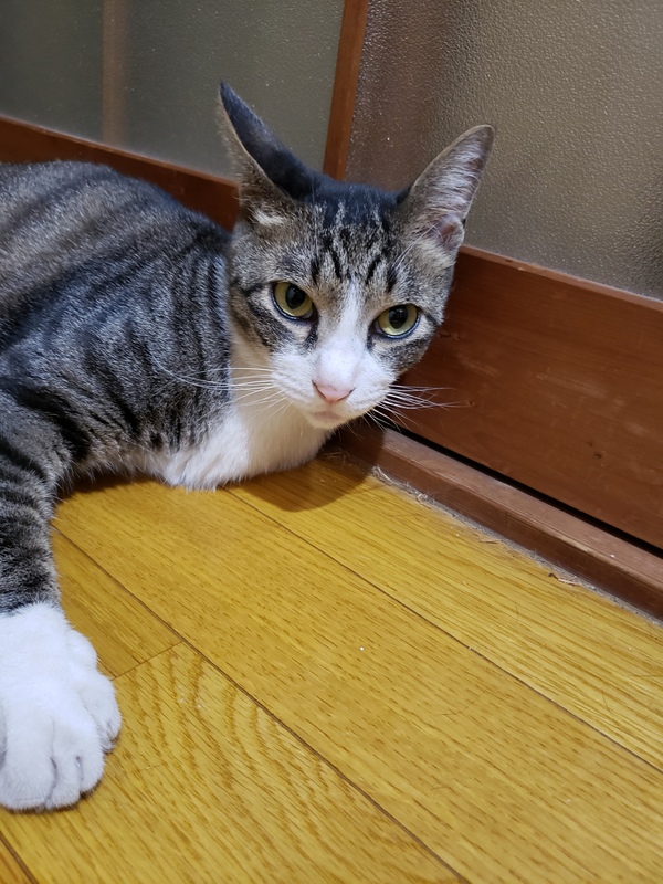 | 特徴(性格など) | 白とグレーのキジ猫です。 やんちゃで甘えん坊です。 |