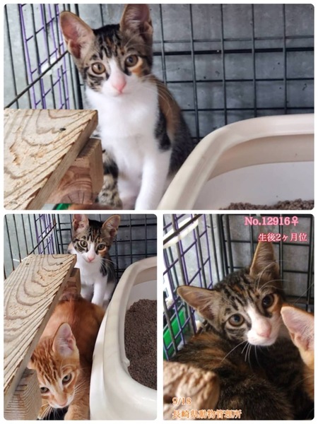 | 特徴(性格など) | 〜10/7追記〜 2匹譲渡になりました。あと茶白君茶トラ君兄弟もご縁を待っています。 生後2か月位、可愛い仔猫4兄妹が捨てられていて収容されました。 (茶トラ2匹と茶白が男の子、 キジ白が女の子の仲良し4匹兄妹です) 収容当初はやや警戒心がありましたが段々と心を許してきてくれて仔猫らしく好奇心旺盛に仲良く遊んでいています(^^) 兄妹一緒にだと嬉しいですがどの子か1匹でも勿論有り難いことでございますm(_ _)m 仔猫用(成長期用)ドライフードを食べる事ができ、猫砂での排泄も出来ます。 まだまだ幼く甘えたい盛りのおちび兄弟。 きっとじきに新しい家庭に馴染んでいけると思います♡ ⭐️当初は2段か3段ケージ飼いから馴らす完全室内飼育で、譲渡後速やかに病院受診、健康診断、ワクチン、生後半年頃を目処に不妊手術をする事が可能な、なるべくお留守番の少ない沢山優しく触れ合っていただけるご家庭。 ⭐️新しい環境に慣れるまで、もしかしたらトイレの失敗などあるかもしれませんが覚悟と根気・理解で受け入れて下さる方m(_ _)m ※混合ワクチン、ウイルス検査実績はありません。エイズ、白血病陽性の可能性も0では無くあり得ることとなります(>_<) 以上の点を踏まえ、この子達の置かれている状況、寂しくて不安もあるであろう心をご理解のうえ、全て受け入れ寄り添っていただけるご家庭で終生可愛がっていただきたいと祈っております。 収容された全ての子達は身勝手な人間による被害者であり、何も悪くありません( ; ; ) 家族の一員として生涯大切にしてくださる優しいご家庭とのご縁が結ばれ幸せになれます様にm(_ _)m 家族を必要としています。のびのびと遊んだり、抱っこされてスリスリ甘えたりさせてあげたいです。 人間よりはるかに短い生涯です。元気に幸せに生きてほしいです。 どうかこの子達に温かい手を差し伸べて下さい。 安心出来る、愛してくれる温かい家庭、当たり前の幸せを知ってほしいです。 生まれたばかりのまだまだこれからの命を、絶対に幸せに過ごしてほしいと願っています。 どうか宜しくお願い致します。この子達と家族になっていただけませんかm(_ _)m ご連絡をお待ちしております♡ ◆健康状態 今のところ元気にしていてフードも食べています。 管理所では収容するのみ になり、健康診断やウイルス検査、ワクチンなどは一切行っておらず、トライアル制度もございません。 ※一度引き出して検査だけをする事も出来ませんm(_ _)m この子達の全てを丸ごと受け止め、終生愛情飼養で迎えて下さる方のみ への譲渡となります事をご理解、ご了承くださいませ。 収容動物の健康面の保証はございませんのでお迎え後は直ぐに病院でメディカルチェック、混合ワクチン、生後半年頃を目処に不妊手術を確実にお願い致します。 ※去勢、避妊手術は長崎県動物管理所より譲渡条件の1つになりますが、何らかの疾患が見つかり治療が必要な場合には年齢・健康状態を考慮の上獣医師の判断を仰ぎ、ご報告を頂いております。 ワクチン接種も同様となります。 (診断書を写真、もしくは郵送にてご提示して頂いております。) また、例えどんな病があろうとも最期まで責任を持って家族として迎えて下さる覚悟のある方でないと、保健所収容されている犬猫ちゃんの受け入れは難しいです。何卒ご了承くださいませ。 ⭐️ノミマダニ駆虫のマイフリーガード滴下済みです。 ★逸走、脱走にはくれぐれもご注意願いますm(_ _)m 交通事故等、命に関わります! 病院へは必ずキャリーに入れて連れて行ってください。 ◆ワクチン接種、去勢手術の有無 ワクチン接種歴不明 未去勢(可能な月齢 生後半年頃を目安 になりましたら必ず不妊手術をする事をお約束頂いております) |