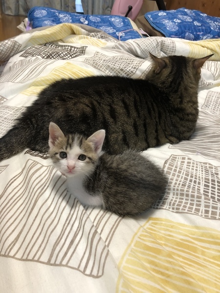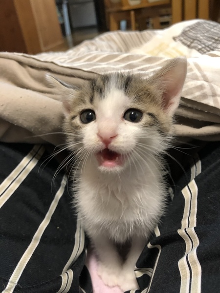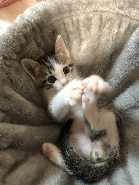 | 里親募集する理由 | 妊娠中の野良猫を保護しました。母猫はTNR予定でしたが運よく里親さんが見つかり1匹の仔猫と一緒にお迎えしていただけました。その後残った子は人工飼育に切り替えて今回里親募集させていただくこととなりました。 | ||