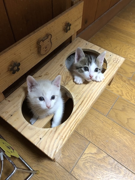 | 特徴(性格など) | キジトラ白の男の子です。尻尾は真っ直ぐです。生後2週間ちょっとから人工飼育で育ったので人慣れ抜群で走って寄ってきます。 | ||