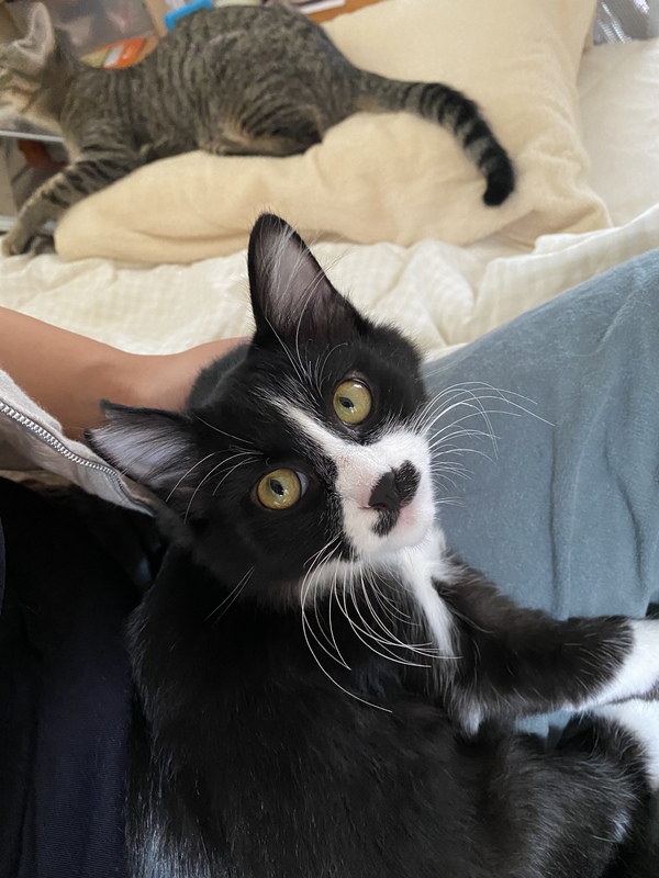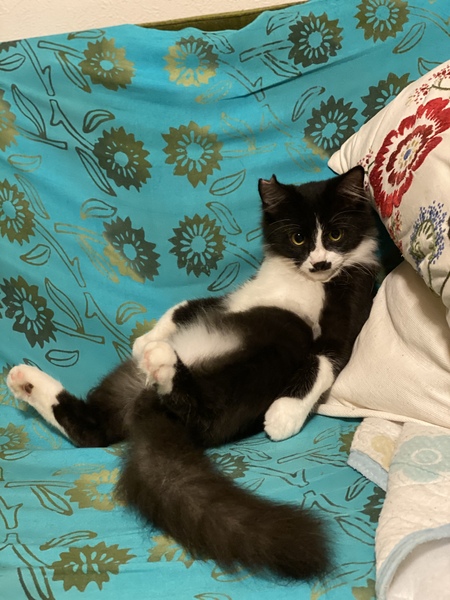 | 特徴(性格など) | 8月30日、保護 8月31日、去勢手術いたしました。 フワッフワの白黒長毛で 尻尾の長ーい男の子です。 お鼻の下の毛がちょび髭のようで とても可愛いらしいです。 性格は遊ぶ時はしっかり遊び、 遊びたくない時は転がってボーっとしています。 5か月間、野良をやっていたので 慣れるまで少しかかるかもしれませんが、慣れてからはお膝にきたり、腕枕で寝たりと、とても甘えん坊です♪ |
