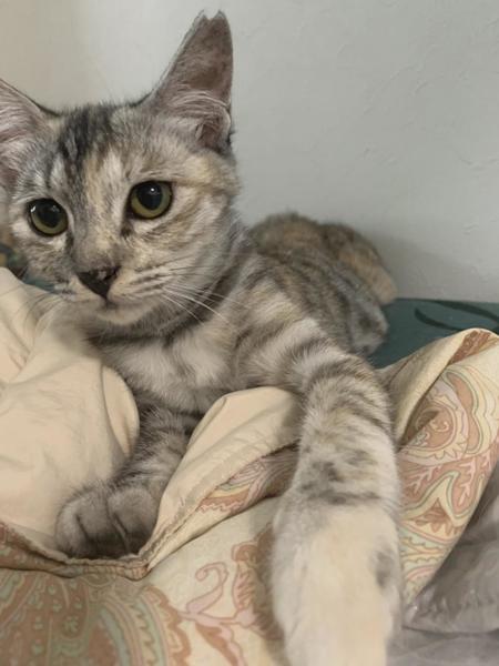 | 特徴(性格など) | 淡いグレーとちょっと茶色の入った、ホワイトタイガー風の女の子です。 食事:ドライフード(スリムで少食気味ですが健康です) トイレ:失敗なし エイズ・白血病:陰性 人馴れ修行中ですが、人には興味をもっているので甘えたさんに変わる可能性大です。 ビビリながらもオモチャで遊んだりします。 怖がっても、引っ掻いたり噛んだり人に危害を加えることはしません。 慣れるまで時間がかかるかもしれませんが これから人とのふれあいを一緒に初体験する喜びがあります。 はじめてのゴロゴロ はじめての抱っこ はじめての添い寝 はじめてのおねだり etc..ときめく瞬間をともにしてください。 たくさんの猫と広い公園で生活していたので、他の猫とも仲良くできます。 保護されてからはワンちゃんとも仲良く過ごしています。 元気いっぱいで、他の猫と毎日飛んだり跳ねたりしています。 ※ 先天性か後天性なのかは分かりませんが、声が出せないようです。 近親交配の多い環境にいたため、それが原因なのかもしれません。 心の声を聞いてくださる優しいご家族をお待ちしています。 ★ZOOMでお見合いできます★ お気軽にお申し込みください。 |