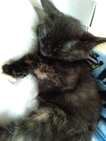 | 特徴(性格など) | 黒×茶 メス 野良猫ちゃんを保護したので生年月日はわかりませんが、3ヶ月くらいだそうです。 |