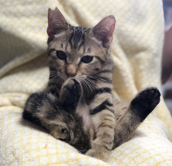 | 特徴(性格など) | 【仮名】五郎くん 【性格】コレマタふつ~のキジトラくん♪ でもアスリート系細マッチョなんです! 長い尻尾を自慢げにフルフルしてる五郎くん♪ 末っ子気質満点でちょっとビビリですが 最近ではゴロゴロもマスターしました♪ 保護猫5匹での大運動会はスゴイィぃぃですガーン 興奮して、おもちゃを加えてヴーーー”ってしても おもちゃの取り合いにならないところに兄弟愛を感じます(笑) また先住猫から家猫教育の英才教育を受け だんだん悪さをしなくなりました(笑) 爪切りOK!お風呂OK!イイコです♪ わんこと一緒に暮らしているので 先住ワンコOKなのもポイント高し♪ 出来れば一緒に保護している兄弟との 一緒のお迎えを希望します♪ ※先住猫有りや猫経験豊富な方はご相談下さい |