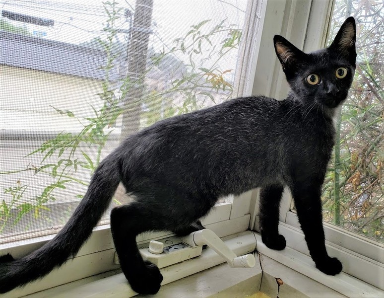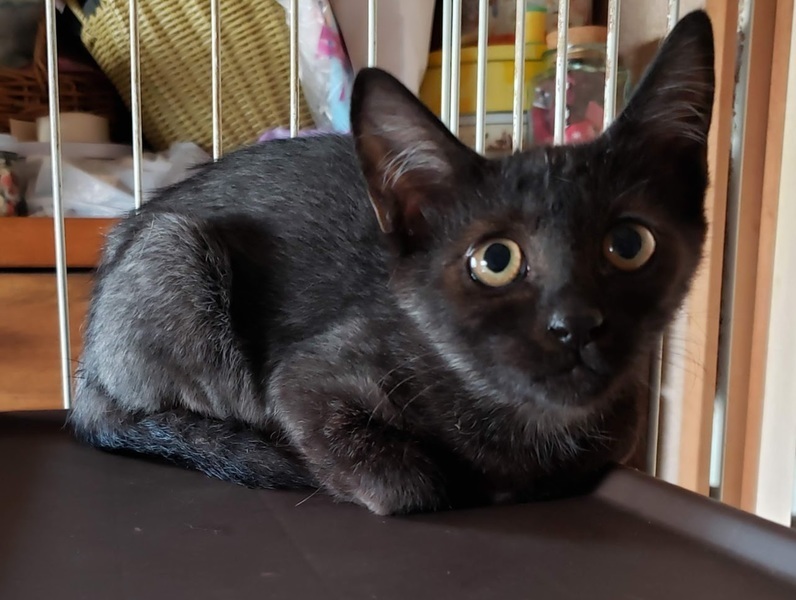 | 特徴(性格など) | 仮名: ナナくん(オス) 毛色: 黒色、 尻尾は長くて先っぽだけくるんとなっています。 性格: 人が好きな構ってちゃんタイプの子です。 人が来ると、寝転がってお腹を出して、ゴロゴロ言って甘えます。 おもちやでも良く遊び、一人でも遊びますが、他猫達とも遊びます。 子猫ですから、お届けは車で1時間以内でお願い致します。 ノミ取り済 検便済 駆虫済 3種混合ワクチン済 猫エイズ・白血病ウィルス検査はともに陰性です。 |
