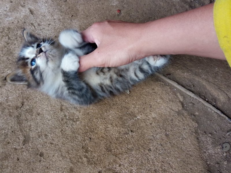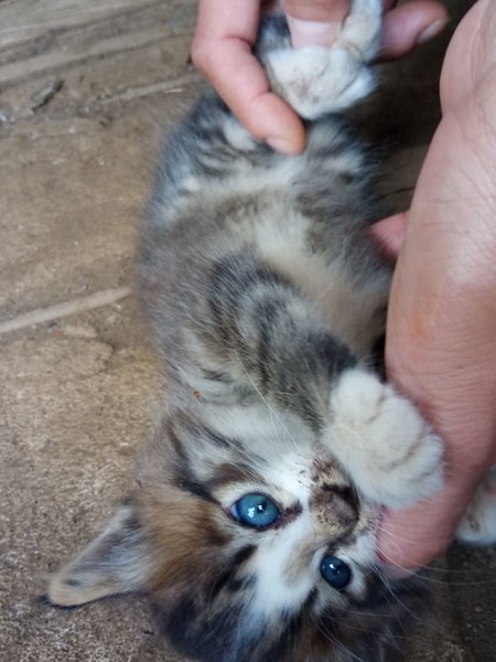 | 特徴(性格など) | とてもかわいらしい白×キジのハチワレです。地域に半長毛の系統が一定割合でおり、子猫のわりにホワホワした毛のため、この子も成長すれば半長毛になりそうです。 初対面で呼びかけたらすぐ寄ってきて甘えてくる、とても人なれしやすい性格のようです。 まわりに去年~今春生まれの兄弟たちもいる環境で、年上猫にもなれています。二匹目、三匹目としても適していると思われます。 |