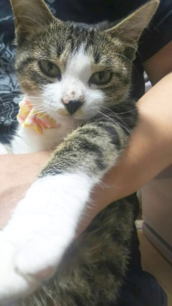| 特徴(性格など) | 穏やかな性格で人が大好きです。 膝の上で寝てくれたり、側に来て寄り添ってまったりしてくれたりします。 保護当時は他の猫ちゃんにビックリしていましたが、今ではすっかり仲良くなり一緒に遊んでいます。 元気に過ごしています。 飼いやすい子なので是非会いに来て下さい。 |