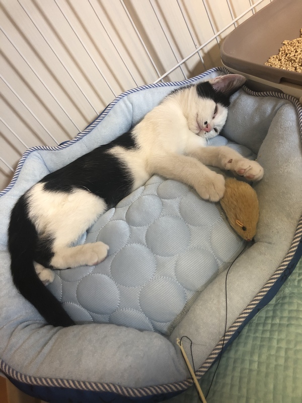 | 里親募集する理由 | 近所の地域猫、野良猫が産んだ子猫です。(病院でノミとり済み。)親猫は不妊手術予定です。 人馴れもしてとても可愛らしいので、暖かいお家で育ってもらいたいと思い、里親様を募集いたします。 現在は自宅で保護しており、 子猫用パウチやカリカリを混ぜたものを食べています! とても元気で、ネズミのおもちゃで遊ぶのが気に入っています。 撫でるとゴロゴロ言います! 耳や手足など大きいため、しっかりとした可愛い猫くんに育つと思います! |