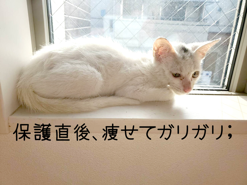 | 特徴(性格など) | 名前:大阪ねやお 推定生年月日:2020年6月位 毛色:白/頭だけ少しグレーのソフトモヒカン しっぽ:すら~ 人馴れしていて、とってもおとなしく優しい性格です。 少し人見知りで、最初は緊張してしまって「シャー」も出ちゃいますが、ちょっぴり怖がりさんなだけ。 本当は人が好きでと~っても甘えん坊な男の子です♥ 今でも緊張しながらも抱っこさせてくれますし、ナデナデ大好き! 撫でていると本来のスリゴロさんを発揮して、ゴロゴロ気持ちよさそうにしてくれます。 一緒に過ごして触れあう時間が増えれば、もっともっと甘えん坊を発揮して、 自分からスリゴロしてくれるようになると思います。 同室の老猫にべったり甘えている猫好きなので、先住さんのいるお家もおすすめです♪ https://www.instagram.com/p/CFYuEzzJnR3/?hl=ja |