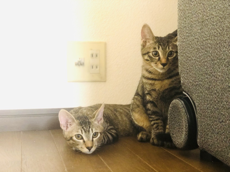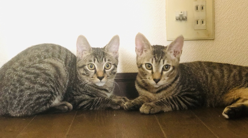 | 特徴(性格など) | ララくん・・・♂(茶系キジトラ) 友好的。初めはちょっぴり人見知りしますが、おもちゃで遊んでいるうちに、ゴロゴロ喉を鳴らしてくれ、お腹も出してくれます! 超イケメンボーイ!! ココちゃん・・・♀(黒系のキジトラ) ちょっぴり怖がりさん。猫じゃらしが動く方にしっかりお顔は反応します。怖いけど、でも遊びたい!ココちゃんのペースで接してあげてくださると嬉しいです!慣れるとっても可愛い女の子です!! |