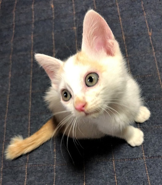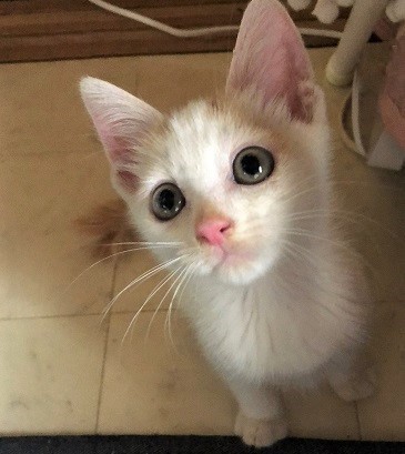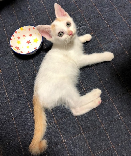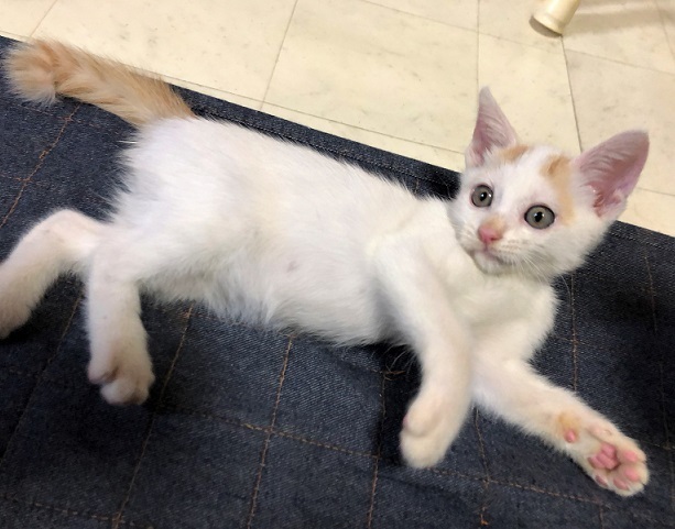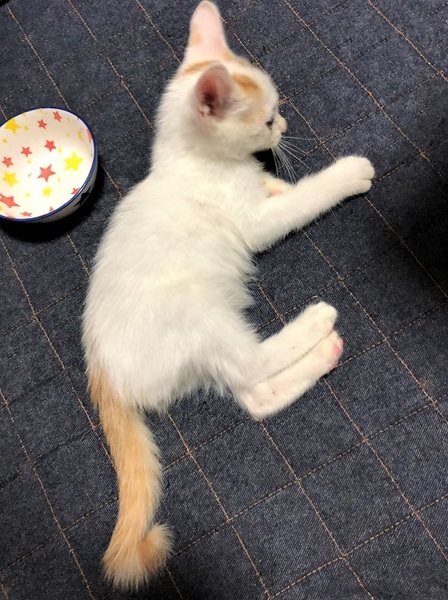 | 特徴(性格など) | 仮名、大洋 少し長目の被毛・白×茶の男の子。 元気で、人が大好きな甘えん坊。 遊んでいる最中に捕まえようとすると、鬼ごっこになりシッポぴーんで走り去ります。 疲れると足元近くで、ゴロゴロ言いながら眠ります。 |