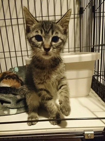 | 里親募集する理由 | 住宅街に親子猫がいるというご依頼があり、ねこけんメンバーがTNRに出動しました。 人馴れしていない母猫は不妊去勢手術をして依頼者さんがお世話を続けてくださり、幼い兄妹子猫たちは保護になりました。 同時募集のアッサム(キジトラ/牡)、シレット(黒/牡)、ルフナ(三毛/牝)の3兄妹です。 一緒のお迎えも大歓迎です♪ |