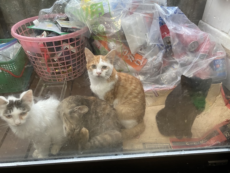 | 特徴(性格など) | 茶白=♂ 片目ちょっと目やにとか出たりしてますが元気です!慣れると凄い人懐っこいです。みんなより、体格が大きいです。 黒=♀ 1番体が小さいです。この子も、慣れたら人懐っこいです! キジトラ=♀ ちょっと、警戒心強いですが慣れたら触らせてくれます! |