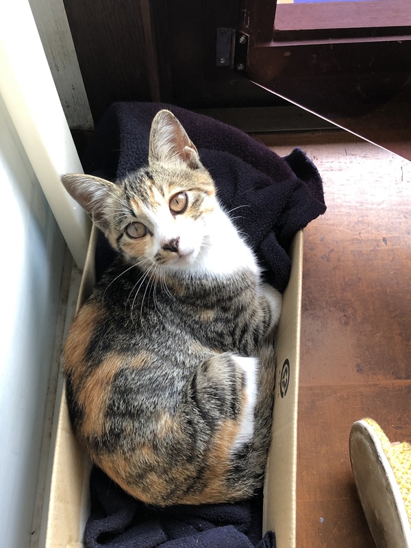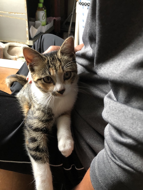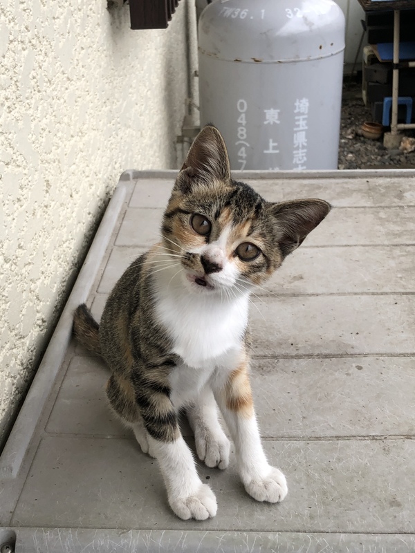 | 特徴(性格など) | 三毛猫の子猫です のら猫なので年齢は不明ですが、多分4ヶ月から5か月くらいです 人なっこく、仔猫のせいか好奇心旺盛でおてんばです 家にいつのまにか入ってきてしまうくらいなので結構度胸もあるのかな?と思います(写真はその時のものです) |