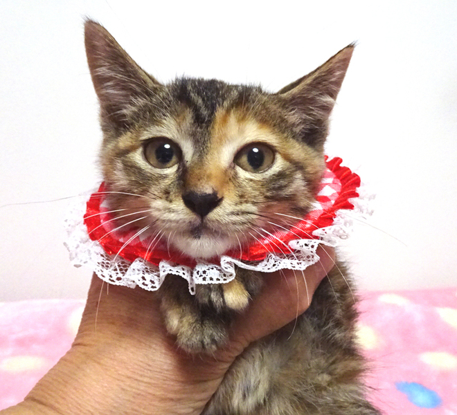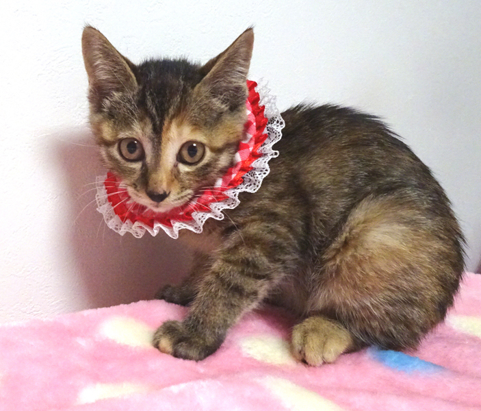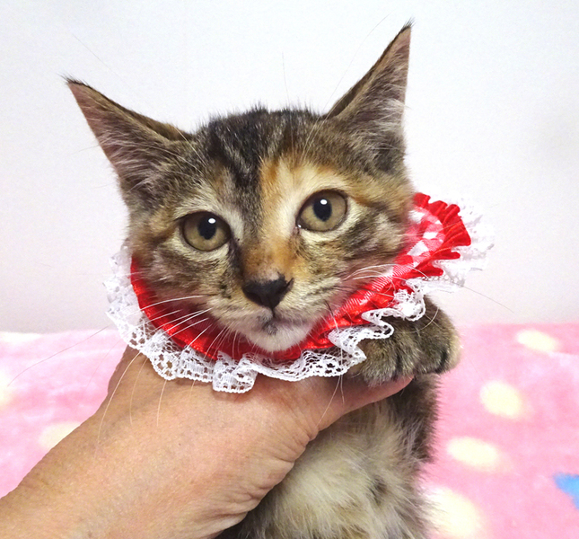 | 特徴(性格など) | 【猫の仮名】紅音(あかね)ちゃん (担当 松嶋) 【毛色・柄】茶キジトラ、長いシッポ おだやかな性格で、猫を飼うのが初めての方でも大丈夫です♪ 走っても大丈夫なペット可のお住まいで、家族の一員として生涯大切にして下さるご家族を募集しています。 猫だけのお留守番が長時間でないご家族を希望します。 |