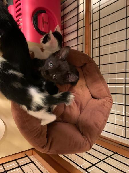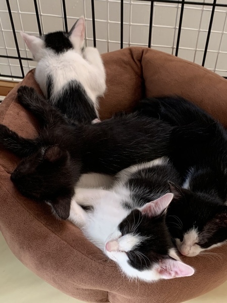 | 特徴(性格など) | 黒子猫♀1(おっとり) ハチワレ子猫♀1(おてんば) ハチワレ子猫♂2(元気、マイペース) みんなまだ小さいので、これからどんな性格になるかは楽しみです とにかく元気な4兄弟です |
