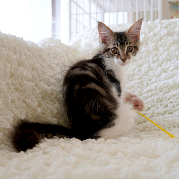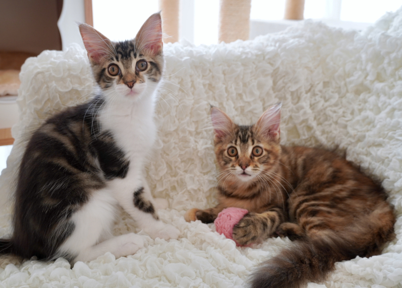 | 特徴(性格など) | 【甘えんぼで元気いっぱい♪とっても仲良しな可愛い兄妹♡チョコ&ミント!】 ほわほわな柔らかいダブルコートの毛並みに 珍しいチョコレートカラーのクラシックタビーがキュートなチョコちゃん♪ こちらも珍しいブラック系のブラウン&ホワイトのクラシックタビーが美しいミントくん♪ 美男美女になることまちがいなし!の可愛いおふたりさんは 生後3ヶ月になるメインクーンの仲良し兄妹です^^ 幼い頃はもっともふもふしていましたが 今はちょうど体の成長が毛の長さを追い越してきている頃ですので 尻尾のほわほわがより引き立ちます♪ メインクーンは4歳頃になって見た目が完成するので このあと4年くらいかけて、 立派なダブルコートの長毛さんたちに成長していきますよ♪ チョコもミントも、とにかく元気いっぱいでとっても仲良し! 我が家の廊下からキャットタワーまでを全速力追いかけっこもなんのその(笑)、 ひとたびじゃらしをふれば、ずーっと遊んでいられる元気っぷりです^^ ですので ・猫さんと一緒に遊びたい!というご家庭 ・お子様がいらっしゃるご家庭 も大歓迎!! 子猫の頃から人と暮らしていて、人間との暮らしに慣れていますので ・猫飼いはじめての方 も大歓迎ですよ〜♪ また、幼い頃から仲良しな兄妹を一緒にお迎えいただきますと 生涯にわたって ラブラブ仲良しな、見ているだけでほんわかしちゃうふたりに育ちます^^ 先住猫さんがいるところに後から猫さんをお迎えされると 皆様、猫どうしの相性の問題で非常にご苦労されていますので 将来2匹飼いたいと思うのであれば 最初から仲良しな子猫兄妹をお迎えしてしまうほうが格段に楽ですし、お勧めです^^ ただし! メインクーンという猫種特有の、「かかりやすい病気」などもありますので 「純血種の猫を飼う」ということは病気のリスクなどもあるのだということを しっかりご理解いただける方からのご応募をお願い致します。 もちろん、生涯にわたって健康に過ごせる子も多いです。 必ず病気になるということでは決してありませんが、 雑種の子よりも病気になりやすい子が一定割合いるというのも事実です。 この現場からは、生後半年程度で肥大型心筋症が判明した子もおりますので (生涯にわたり投薬が必要にはなりますが、健康管理に注意すれば元気に暮らせます♪) 「可愛いから」「メインクーンだから」ということだけではなく、 万が一病気になった場合でも、 きちんと治療を継続していけるかどうか、ということもお考えの上、お申し込みをお願い致します。 上記のことから、 ペット保険への加入などもお勧めです^^ とはいえ とても元気で健康な子たちですので ご家族にお迎えいただけましたら 可愛いふたりの様子にご家族皆様に笑顔が増えること間違いなし♪です^^ ご心配なことやご不明なことは どの時点でも丁寧に回答いたしますので ご遠慮なくお尋ねくださいませ♪ 可愛いふたりの元気いっぱいな様子はこちらの動画をご覧ください♪ ↓ https://www.dropbox.com/s/9fa9zx6eajifu8r/MOV_0719.mp4?dl=0 仲良しなふたりに素敵なご縁がありますように! ※チョコちゃん・ミントくんはやや慎重な性格ですので 先住さんにわんちゃんなど猫さん以外の動物がいらっしゃるご家庭は 申し訳ございませんが向かないと思います。 *** 健康状態 *** 良好です!子猫らしく、元気い〜〜〜っぱい! ●3種ワクチン2回接種済み→本年度分完了 ●ノミダニ駆除済み ●お腹の虫の駆虫済み ●耳ダニ駆除済み ●検便複数回 ( ー ) ●ウイルス検査済み 猫エイズ( ー ) 猫白血病( ー ) ●健康診断の血液検査済み;異常なしの健康体 ●爪切り済み ●お耳掃除済み ●トイレのしつけ済み ・耳ダニ治療完了 ・コクシジウム治療完了 ・結膜炎(猫風邪)治療完了 ※ミントくんは、幼少期の結膜炎の名残で左目にやや黒っぽい小さなシミのようなものがあります。 視力にはまったく問題なく、ふつうの猫として生活できます。 (見た目の問題だけです) ※現時点で必要な医療・ケアはすべて完了しておりますので ご安心してお迎えいただけます^^ ※医療費の一部ご協力金として、健康診断・各種治療済み子猫用20000円の2匹分をお願い致します。 上記医療をご自身でされる場合より格安になりますので、ご理解いただけますと幸いです。 |