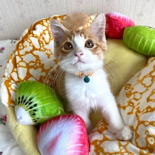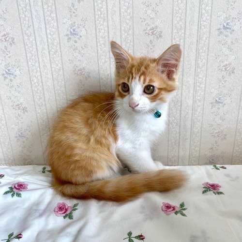 | 特徴(性格など) | 毛並みがとても柔らかく、尻尾はフサッと長毛です。保護当初は威嚇もなくあまりにも大人しいので野良ちゃんらしからぬ…。と心配しましたが、今では表情も豊かになり目が合うだけでゴロゴロと喉を鳴らすのでとても可愛いです♡戯れ方もほんわかなおっとり王子になりました。鳴き声がミォンミォンと聴こえるので、美音くんと名付けました。 | ||