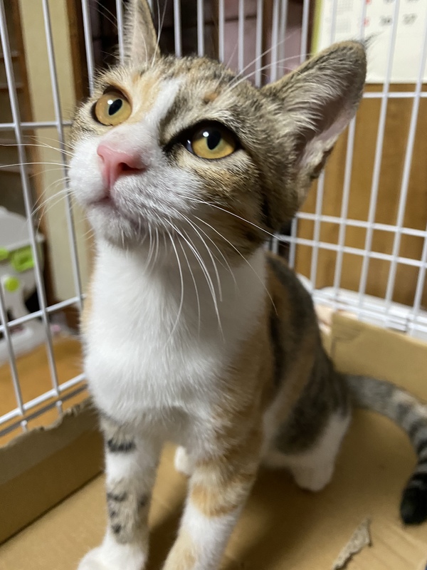 | 特徴(性格など) | 三毛猫。 4カ月位です。 おもちゃで良く遊びます。 |