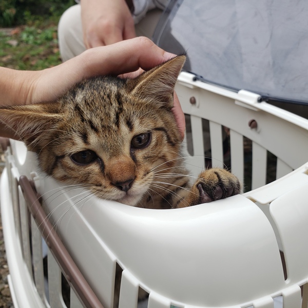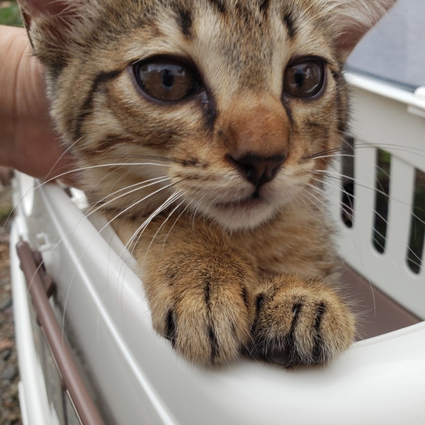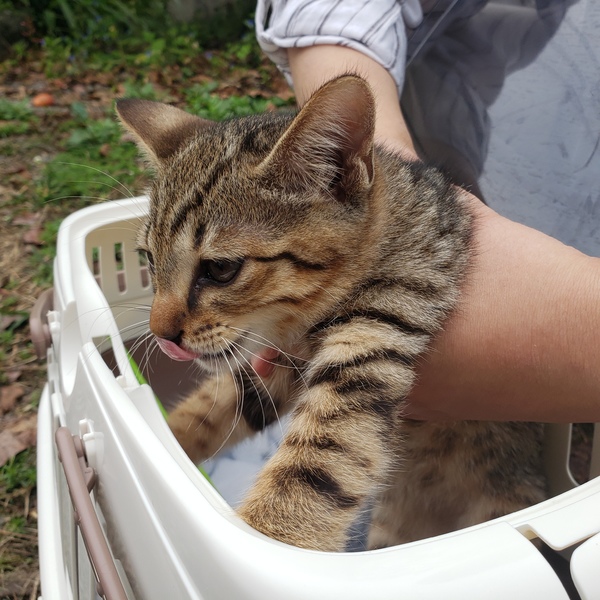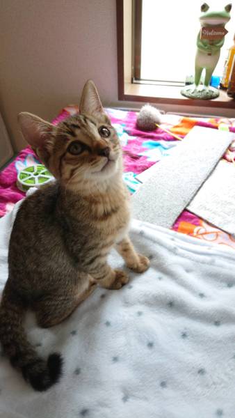 | 特徴(性格など) | 茶色毛色のキジトラくん とても甘えん坊です 抱っこしたらゴロゴロいってます |