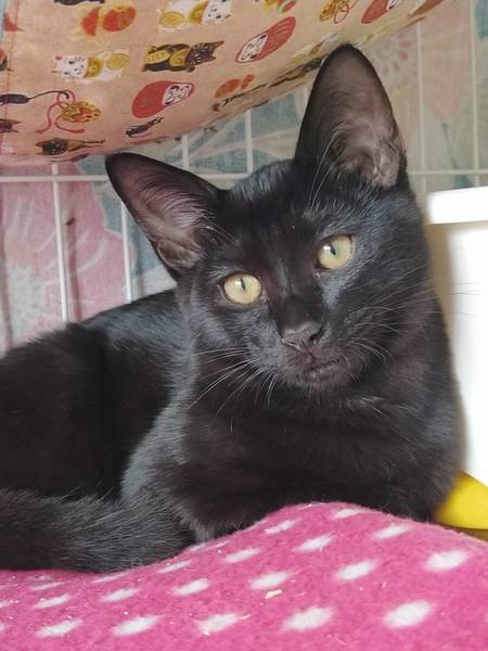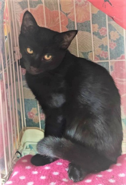 | 特徴(性格など) | ●柄・毛並み~黒びかりの黒 ●ワクチン一回目済 ●一緒に保護された姉弟のルナちゃんの、後ろに隠れてしまうフミくん。 でもルナちゃんより身体は大きい。(ここだけ威張り~) それだけでなく、この黒光りした身体。 きりっと凛々しいこのイケニャンぶりぶり。 どんな人間もフミくんにメロメロだっ。 ビビりは少しずつ治るでしょう・・? |