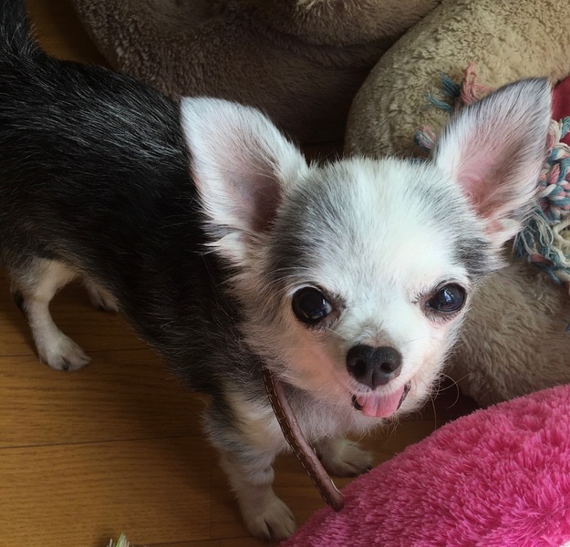 | 特徴(性格など) | ~性格・特徴~ 【愛称】ニナ 【犬種】チワワ 【毛色】黒白(白髪交じり) 【体重】2.5kgくらい 【性格】 いつも笑顔で尻尾ふりふり! 犬、人間とも良好ですが、気分屋の所もあり気分がのらないと喧嘩を売ります。 喧嘩は売りますが基本小心者なので直ぐに降参してしまうおちゃめな性格です。 【トイレ】 トイレシートの認識はありますが、布(毛布やクッション等)がお好きな様です。 成功率は50%位 【お留守番】 フリーでしていますが、吠える事もなく大人しくしています。 【食事】 ドライフードにウェット缶か、手作りのトッピングをしています。 好き嫌いなく、完食してくれています。 歯が全部無いのでドライフードだけの方が食べやすい様です。 柔らかい物は食べるのに時間がかかります。 食べているうちに外にこぼれてしまうので、こぼれにくいお皿で対応しています。 ~健康状態~ 【年齢】 推定8歳位です。 【状態】 良好ですが、避妊手術時に歯を全部抜歯しております。 |