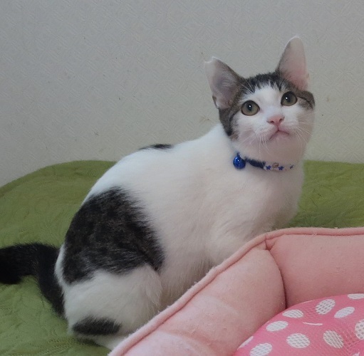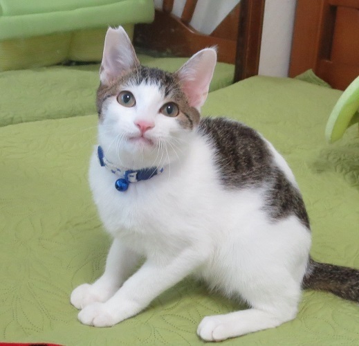 | 特徴(性格など) | お庭でエサをあげているだけで、ネコ達だけの保育園状態の環境でしたが、きつい性格はいない一族ですので、最初はビビることがあっても、良い子ばかりです。 かんぺいくんは、最初から性格が大人しいことが見え見えの子で、始めは怖がっていましたが、そのうち自分から人に寄って来るようになりました。穏やかで甘えん坊で、若い男の子猫の良さがいっぱいの子です。遊びも大好き、可愛い子です |