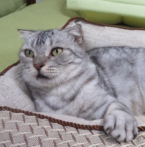 | 特徴(性格など) | のんびり穏やかで静かで、手のかからない子です。焦る・怖がるということに縁がなく、実にマイペース。 薄いグレーの綺麗な縞模様で立派な尻尾。撫で心地最高の毛並。顔はのっぺり顔で、何があってもどこ吹く風。極めて穏やかで静かな、飄々としたスコティッシュくんです。 淡々とお品が良くて、正にお殿様。遊び相手にはなりません(笑) のんびりジョンくん、これからはもう二度と外の土を踏むことのない一生を与えてあげたいと思っています。大事に大事にして頂ける、そういう意識のある里親さまとのご縁を希望しております。 |