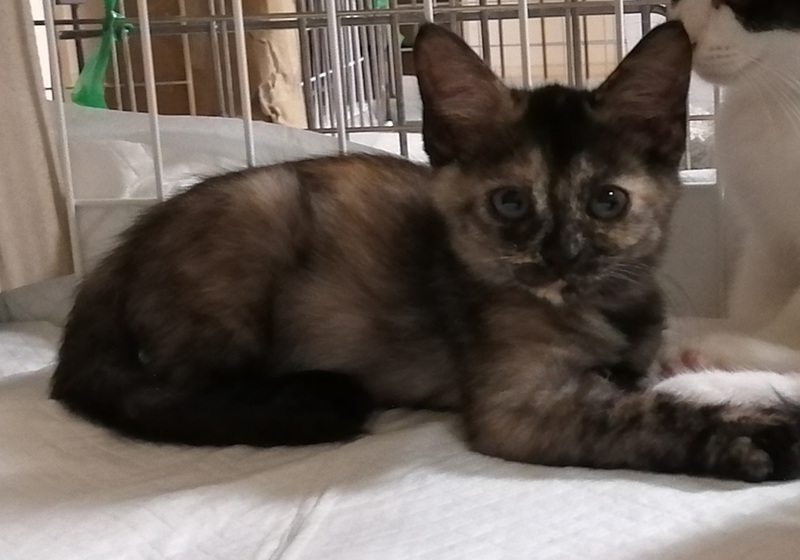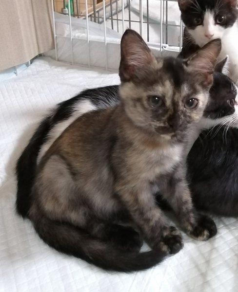 | 特徴(性格など) | No.2020-04 仮名:さーちゃん 特徴:さび、長尾 性格:元気いっぱいな「さーちゃん」、姉弟たちと元気に遊びます。姉弟の中で一番小さかったのですが、今ではごはんもりもり食べすくすく育っています。大人猫さんとも仲良しですので、先住猫さんがいても安心です。 譲渡前措置:レボルーションによる駆虫済、血液検査済 健康状態:良好、AIDS白血病陰性 |