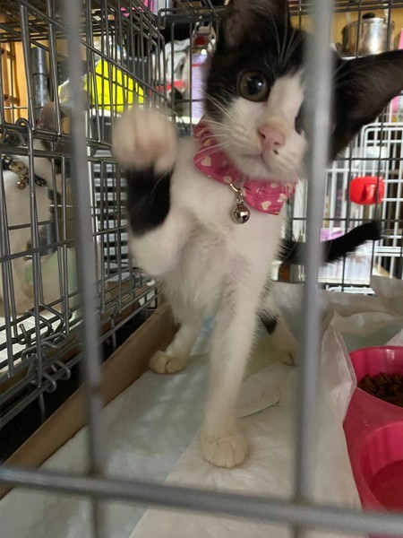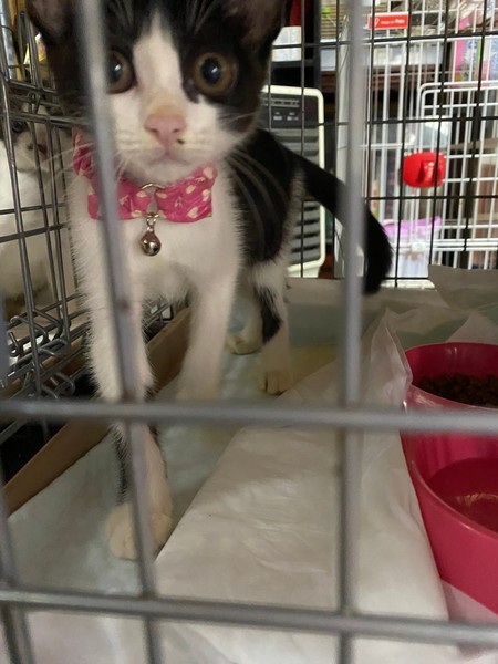 | 特徴(性格など) | 白黒ハチワレ美人の女の子です。 おてんばで甘えん坊です |