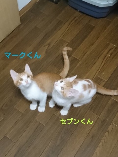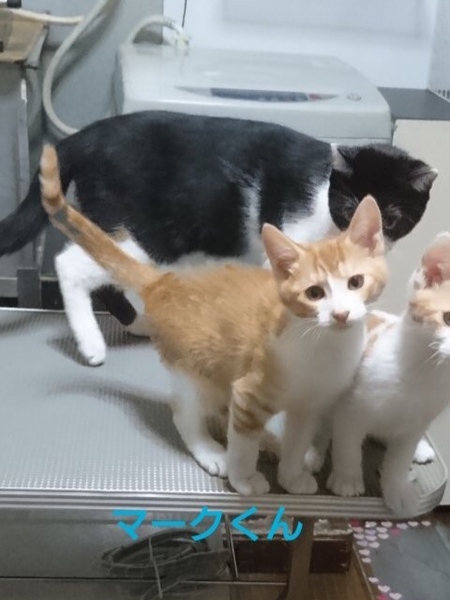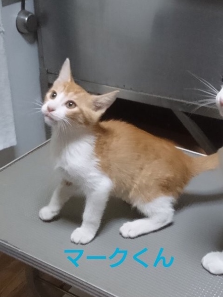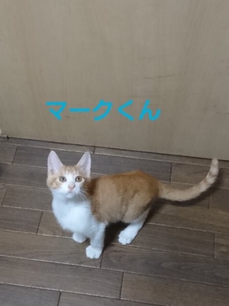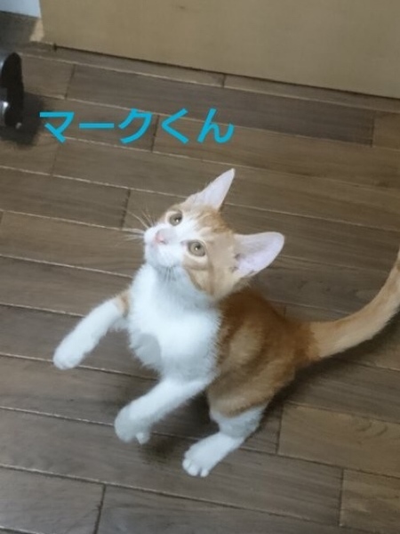 | 特徴(性格など) | 仮名「マークくん」 ワクチン済み、駆虫済み、ウイルス検査白血病、エイズ共に陰性 茶白の男の子 とにかく甘ったれのかまってちゃん。 人が好きで飛んできて甘えてくる子です。 遊ぶのも大好きな元気な男の子です。 月齢が浅いので兄妹または月齢の近い子と2匹での受け入れをお願いします。 小学生以上でしたらお子さんのいるご家庭でも大丈夫です。。 レビンくん C311611 セブンくん C311614 と兄弟です。 小学生以上でしたらお子さんのいるご家庭でも大丈夫です。 お留守番が短いお宅を希望します。 |