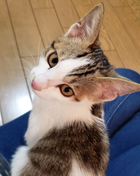 | 特徴(性格など) | とっても甘えん坊な子。 人懐っこく、元気いっぱい食欲旺盛です。 おもちゃで遊ぶときも基本の位置は人間の膝の上。狙いをつけて飛び出してゆき、おもちゃを捕まえるとまた膝の上に戻って喉をゴロゴロ。疲れるとそのままウトウト。 甘えたいときの鳴き声がかなり大きいので注意が必要です。 耳掃除、ブラッシング、爪切りなど少しずつ慣らしています。 保護したばかりなのでワクチンは摂取前ですが、こちらでワクチン接種後、健康状態を見てからのお渡しになります。 |