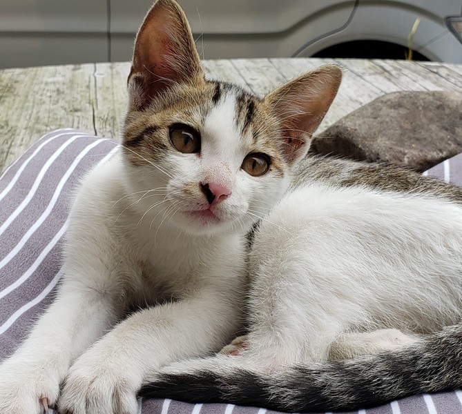 | 里親募集する理由 | ごみ捨て場付近に捨てられ、そのまま家の庭に迷い込んで数日間ウロウロしていたところを保護しました。 家族が猫アレルギーであまり長期間はおいておけないため、新しい家族を探しています。 |