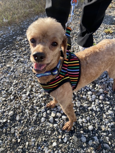 | 特徴(性格など) | プードルです。 性格は人懐っこく、人がそばにいれば大人しいです。 名前を呼べば返事もしますし、少し時間はかかりますが「おすわり」「おて」はできるみたいです。 (「おかわり」というと、「?合ってるかな?といった感じでおずおずと左手を出すので、賢い子だと思われます。) |