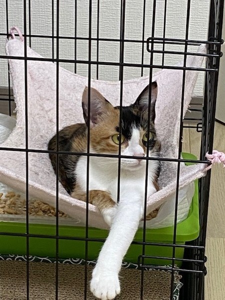 | 特徴(性格など) | メスの三毛猫、ワクチン・避妊手術済みです。 猫エイズ・白血病は陰性です。 頭が良く、好奇心旺盛で、一緒に遊ぶのが大好きな野性味溢れる猫です。 野良時代の習性がまだ抜け切れておりませんが、徐々に人に慣れてきています。 そのため、まだツンデレのデレが少な目です。 この子に愛情を注いでくださる里親さんを探しております。 |